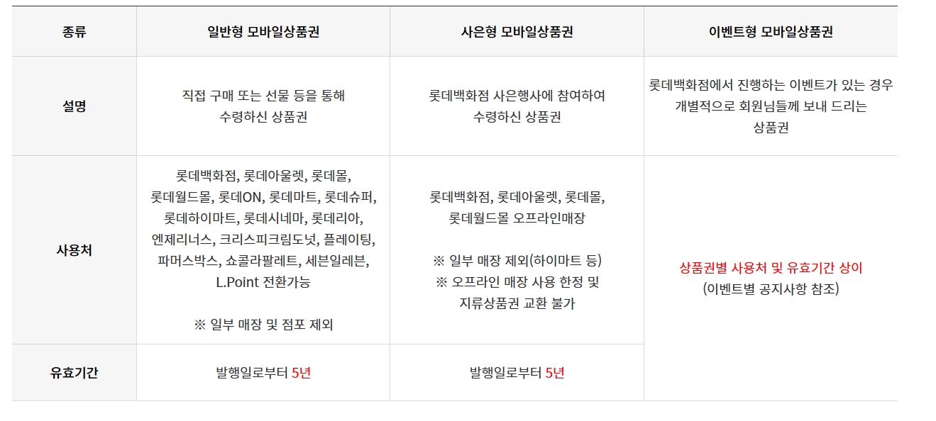 우선 롯데 상품권이라고 다 같은 게 아니에요.
