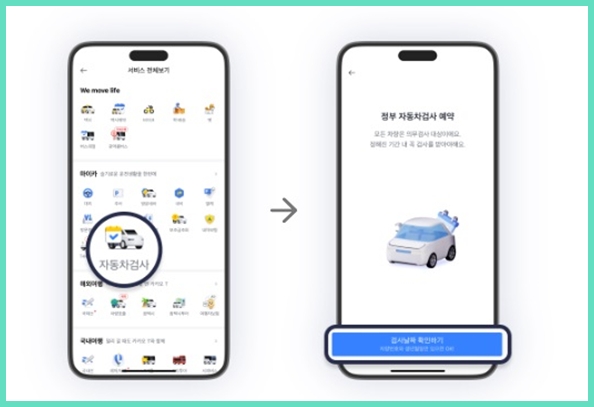 결국 요지는, 이제 굳이 한두 군데에 국한된 채널이 아니라, 시중에 널리 쓰이는 여러 앱에서 손쉽게 검사기간도 확인하고 예약도 할 수 있게 됐다는 거예요. 그럼 검사 받으러 가는 거 귀찮아 미뤄뒀다가 과태료 내는 일이 훨씬 줄어들겠죠.